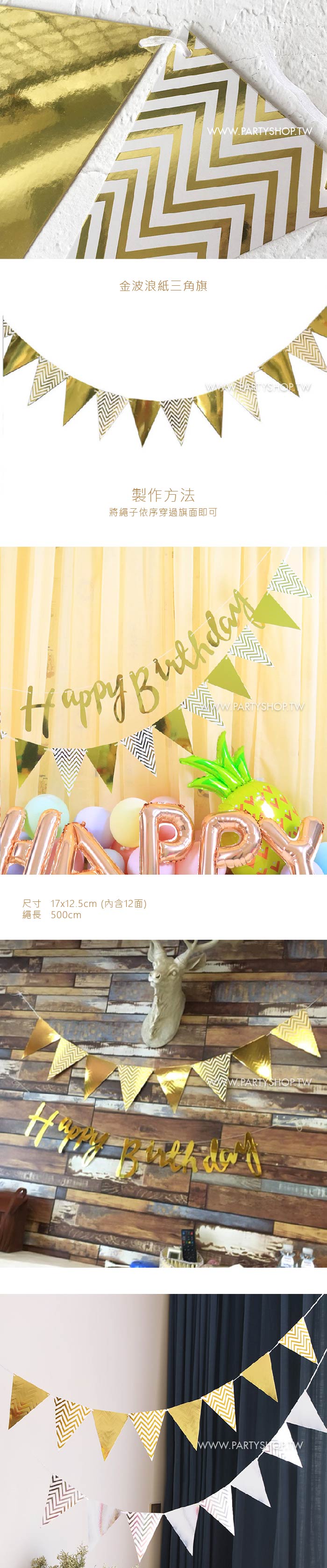 台灣派對@氣球外送輕派對訂製 -- 金-波浪紙三角旗[T10]